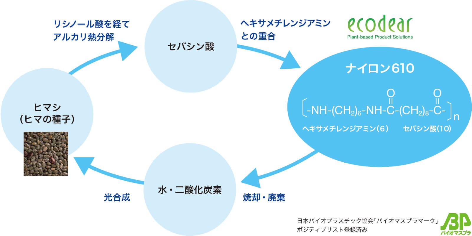 ナイロン610樹脂アミラン™ CM2000シリーズは、植物由来のひまし油から生産されたセバシン酸を約60%原料とするバイオベースナイロンです。ナイロン6、66に比べて優れた特長を生かし、コンパウンドグレードも開発し、用途展開を進めています。