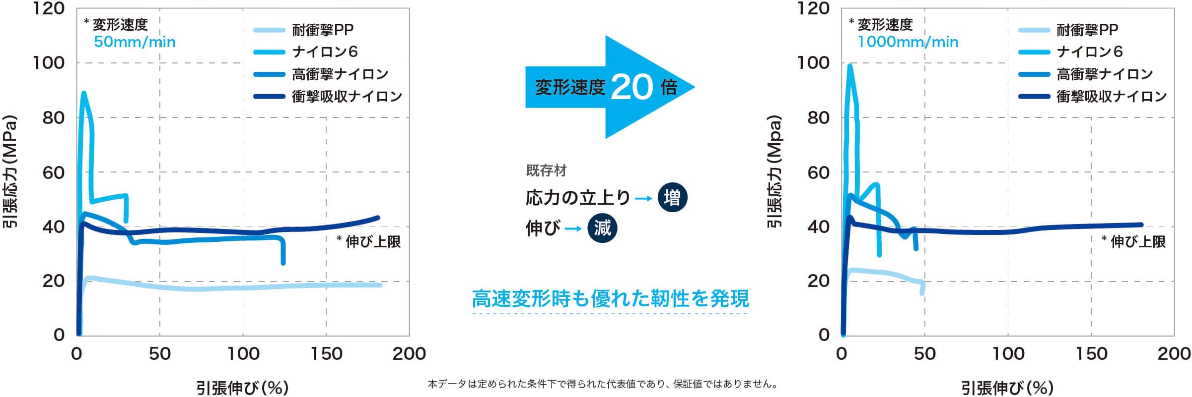 当社ナノアロイ™ 技術を用いた超耐衝撃ナイロン樹脂グレードです。高速衝撃に対する柔軟性や、衝撃吸収性、復元性を向上させることで、製品の長期耐久性、安全性向上が期待されます。