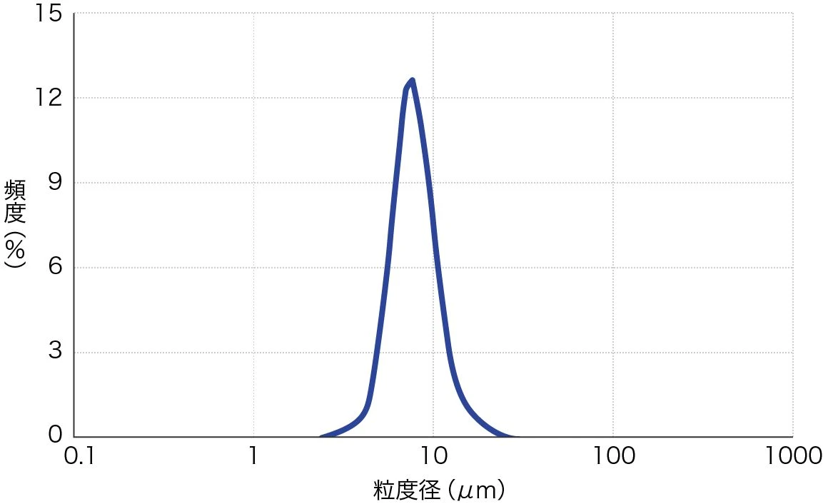 分散性や品質安定に貢献するシャープな粒度分布(均一な粒子径)