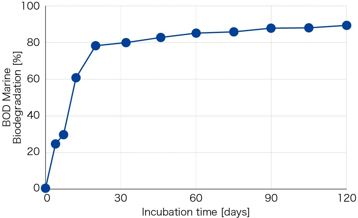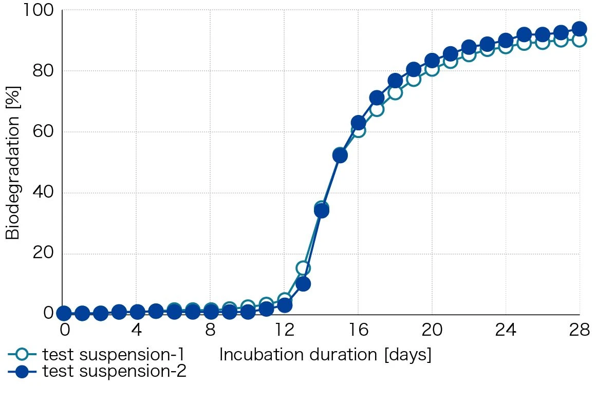 ※OECD 301F:OECDテストガイドラインに示された生分解性試験の一種で、28日間で60%以上生分解性が確認できると「易生分解性」と判断される。