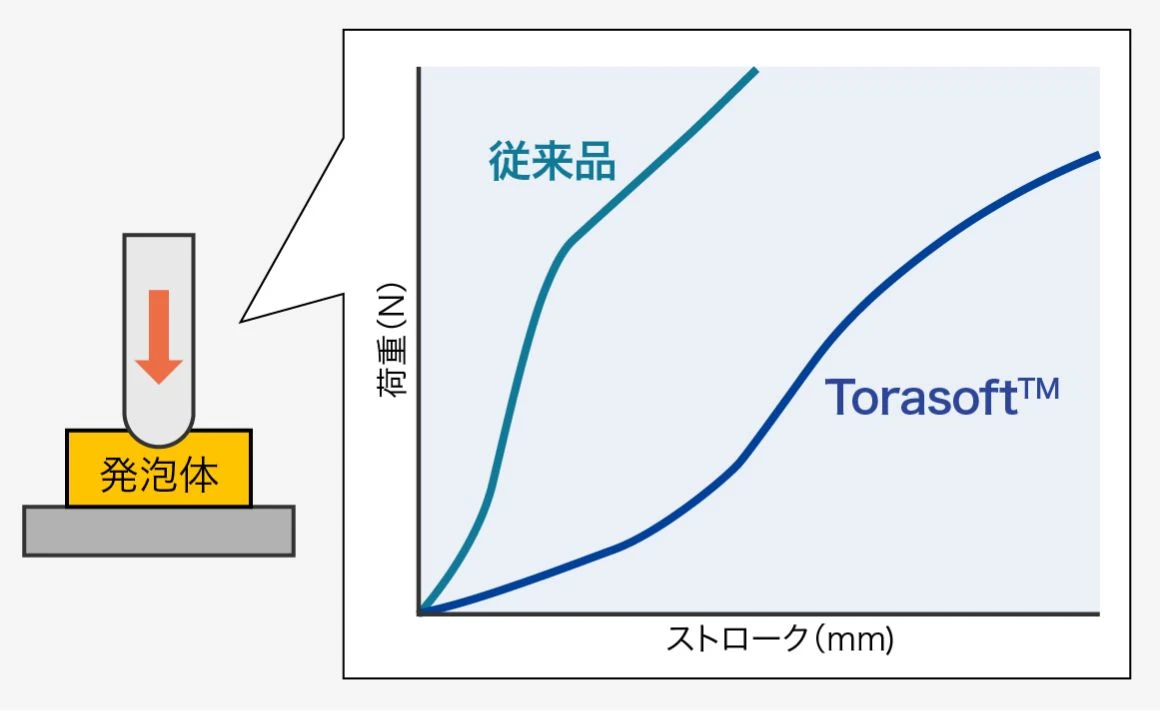 発泡体のソフト化(既存PPフォームとの比較)