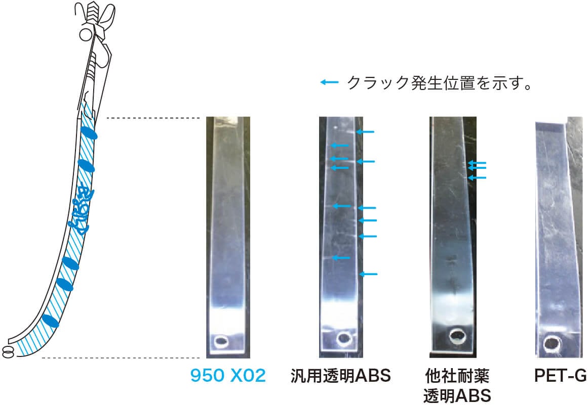 高耐薬透明ABS樹脂 トヨラック™950 X02は、耐薬品性・透明性が要求される材料としてのニーズにお応えするため最適設計された材料です。