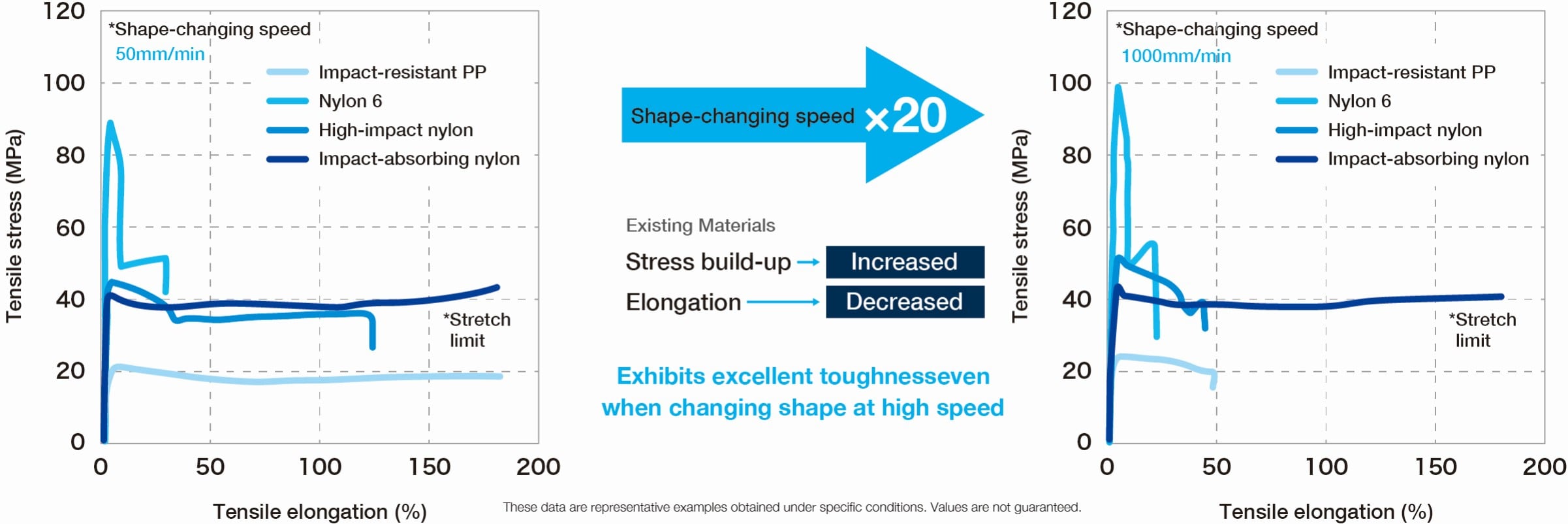 Typical engineering plastics can easily break when high-speed impact is applied.