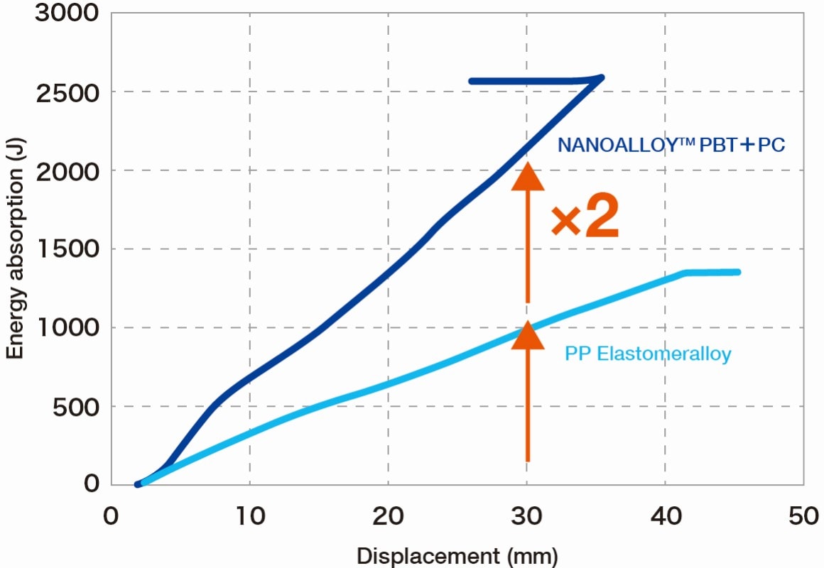 Toray has succeeded in significantly improving impact resistance by using our proprietary innovative microstructure control technology (NANOALLOY™ in our PBT/PC resin polymer alloy.