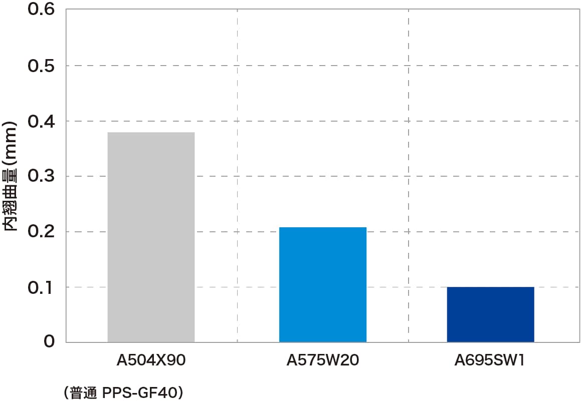 TORELINA™ A575W20、A695SW1的翘曲变形量